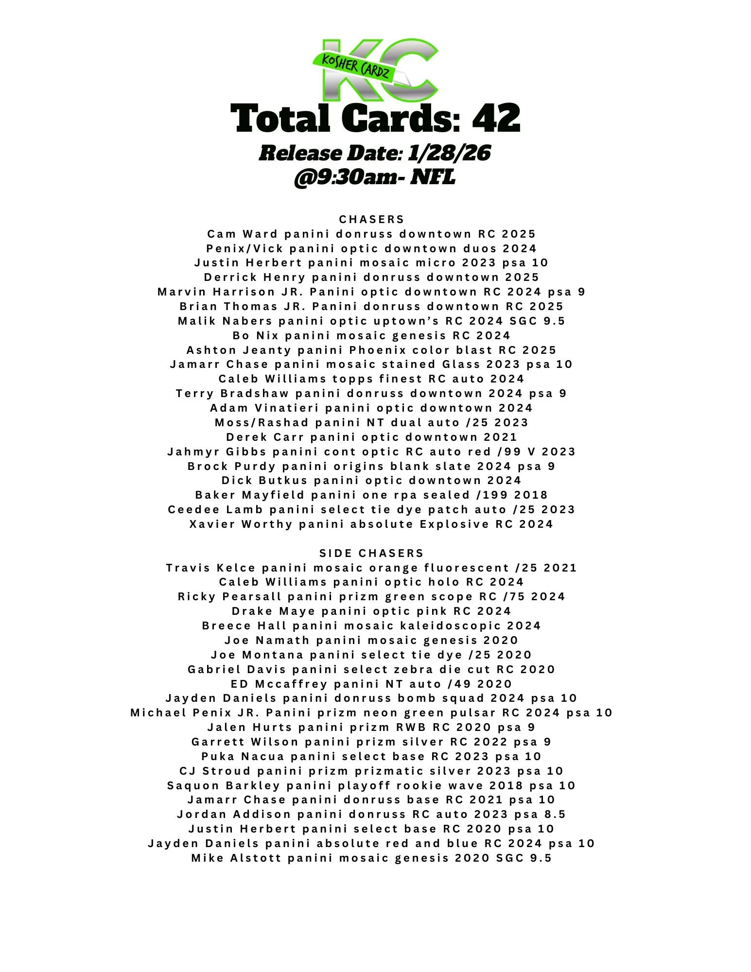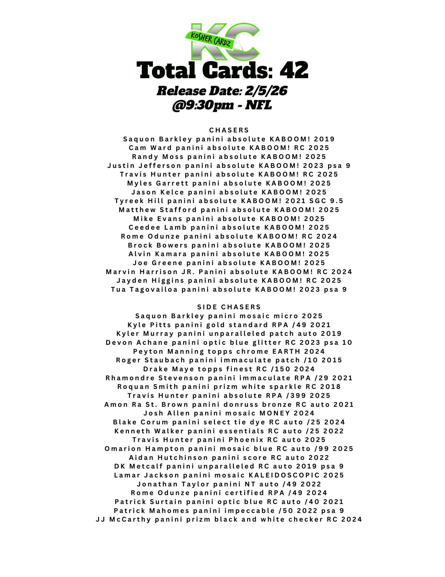 Every Kahoon Pack contains a single card from the official series checklist, which is publicly available for buyers to view in advance.