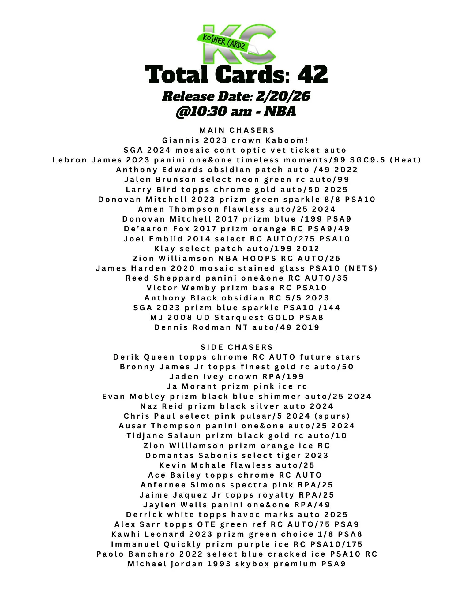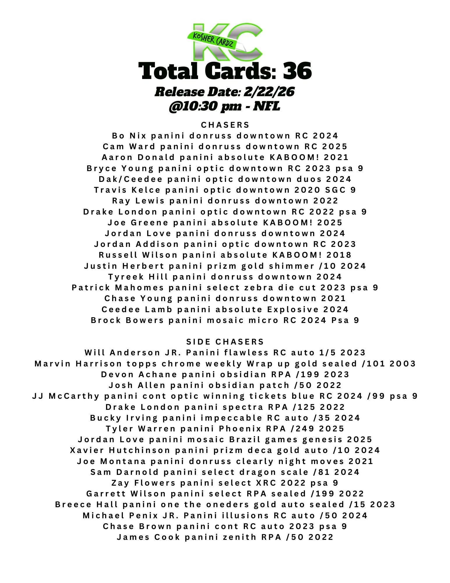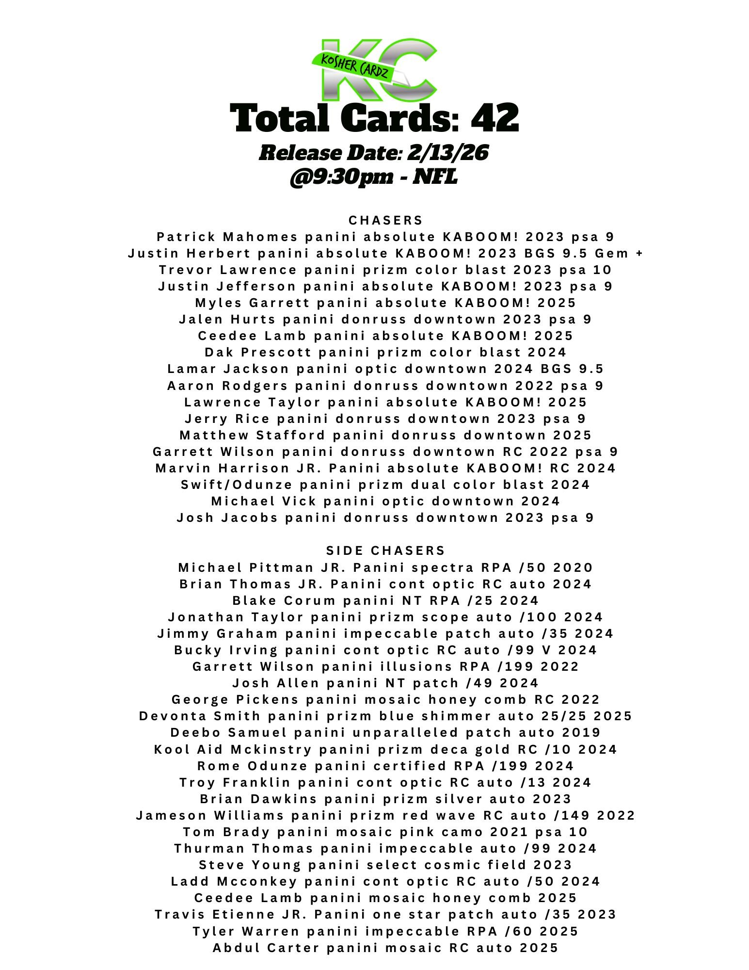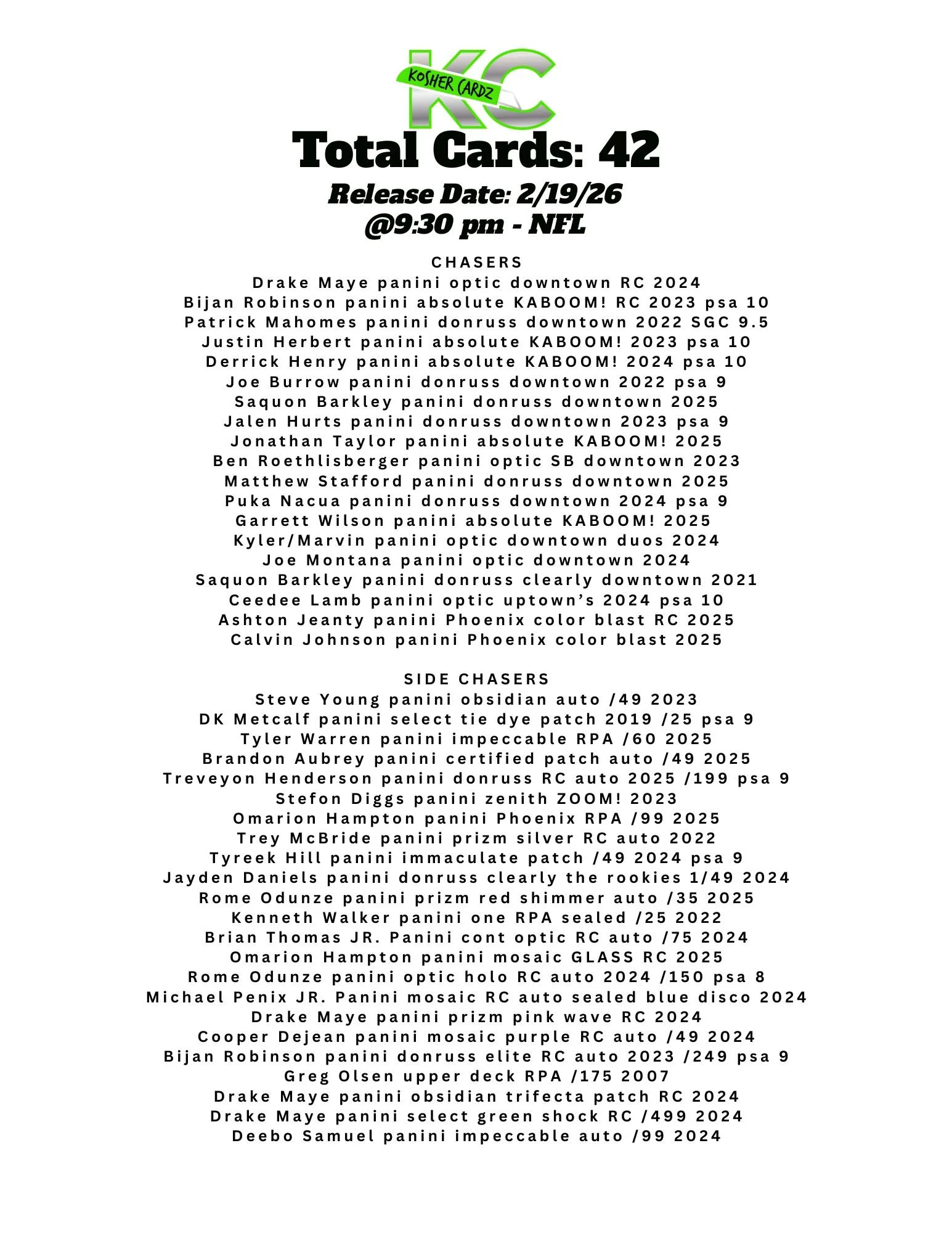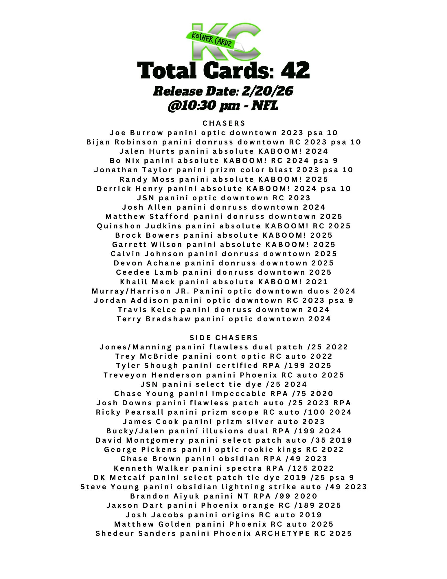 Each checklist represents one complete series that runs entirely within a single livestream and never extends beyond it. As the series progresses, every card pulled is tracked live and visually crossed off the checklist, ensuring complete clarity for all participants.
