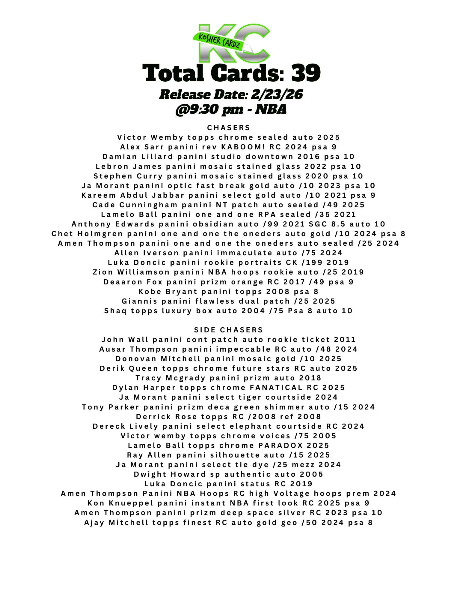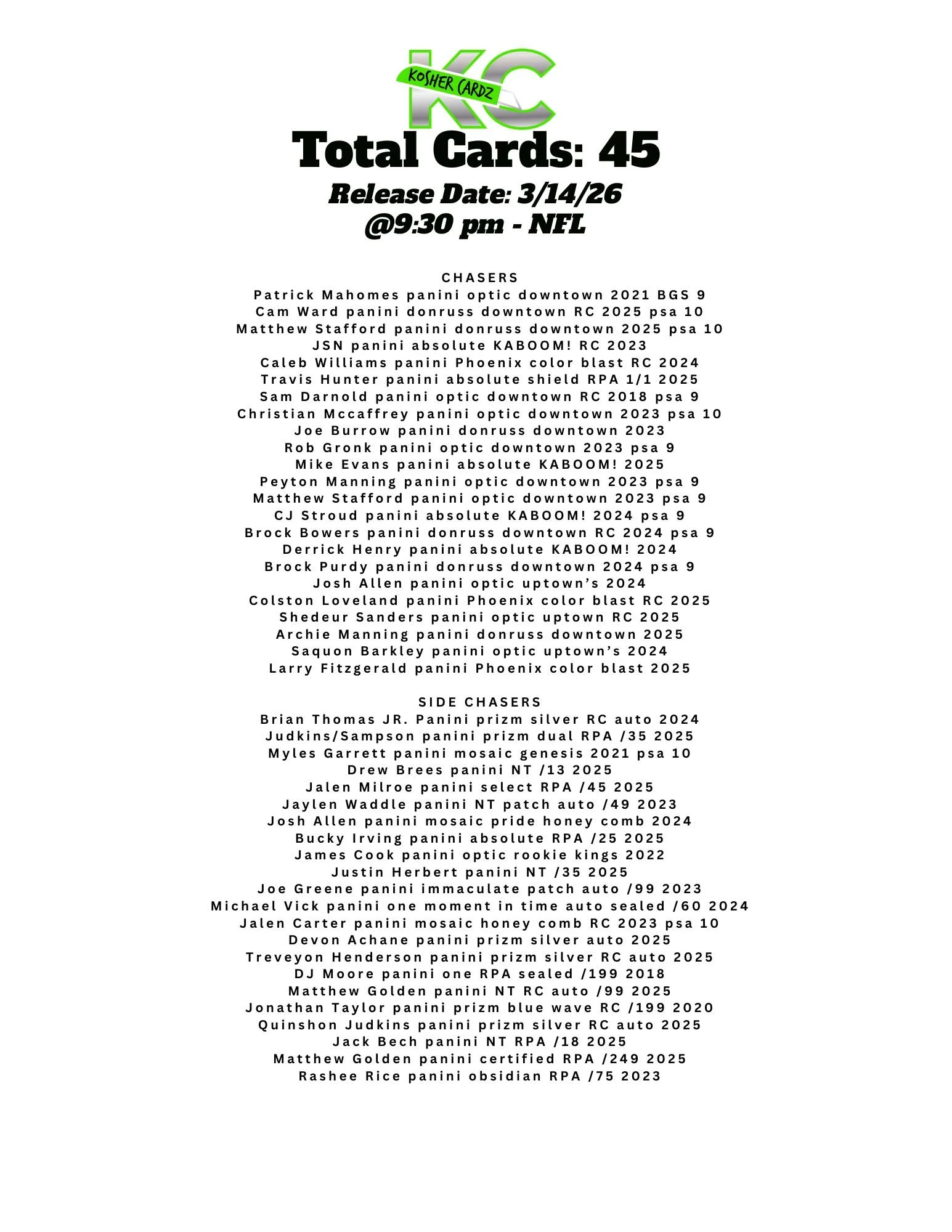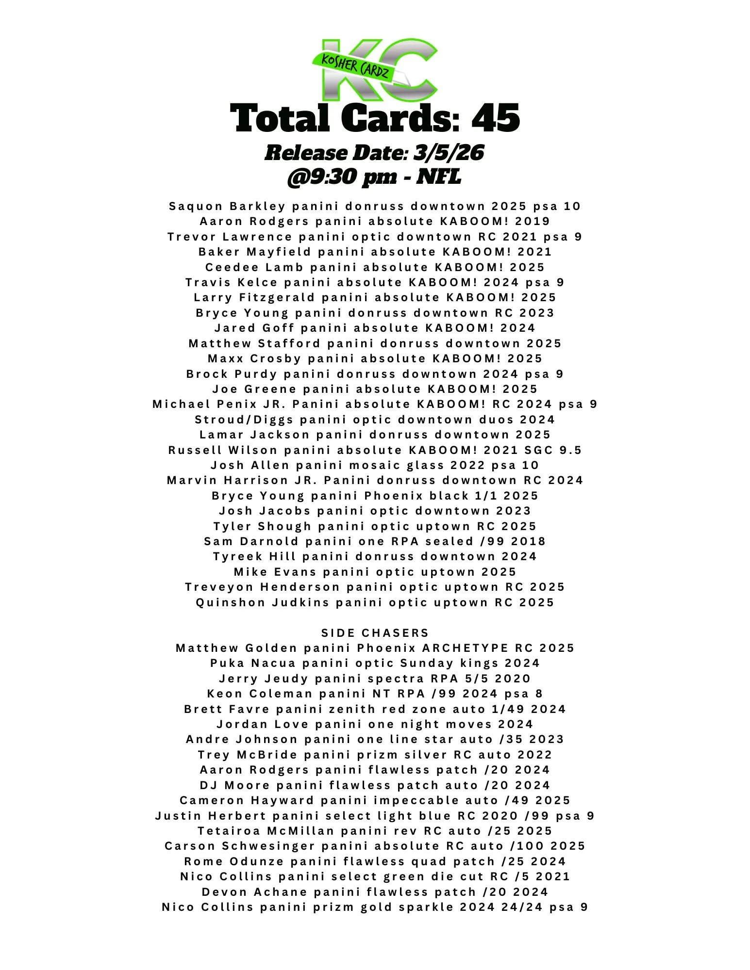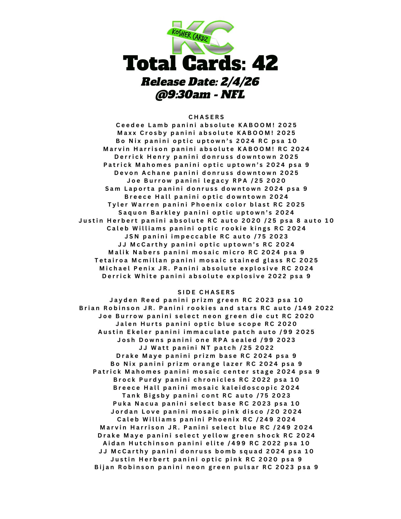 Each checklist represents one complete series that runs entirely within a single livestream and never extends beyond it. As the series progresses, every card pulled is tracked live and visually crossed off the checklist, ensuring complete clarity for all participants.