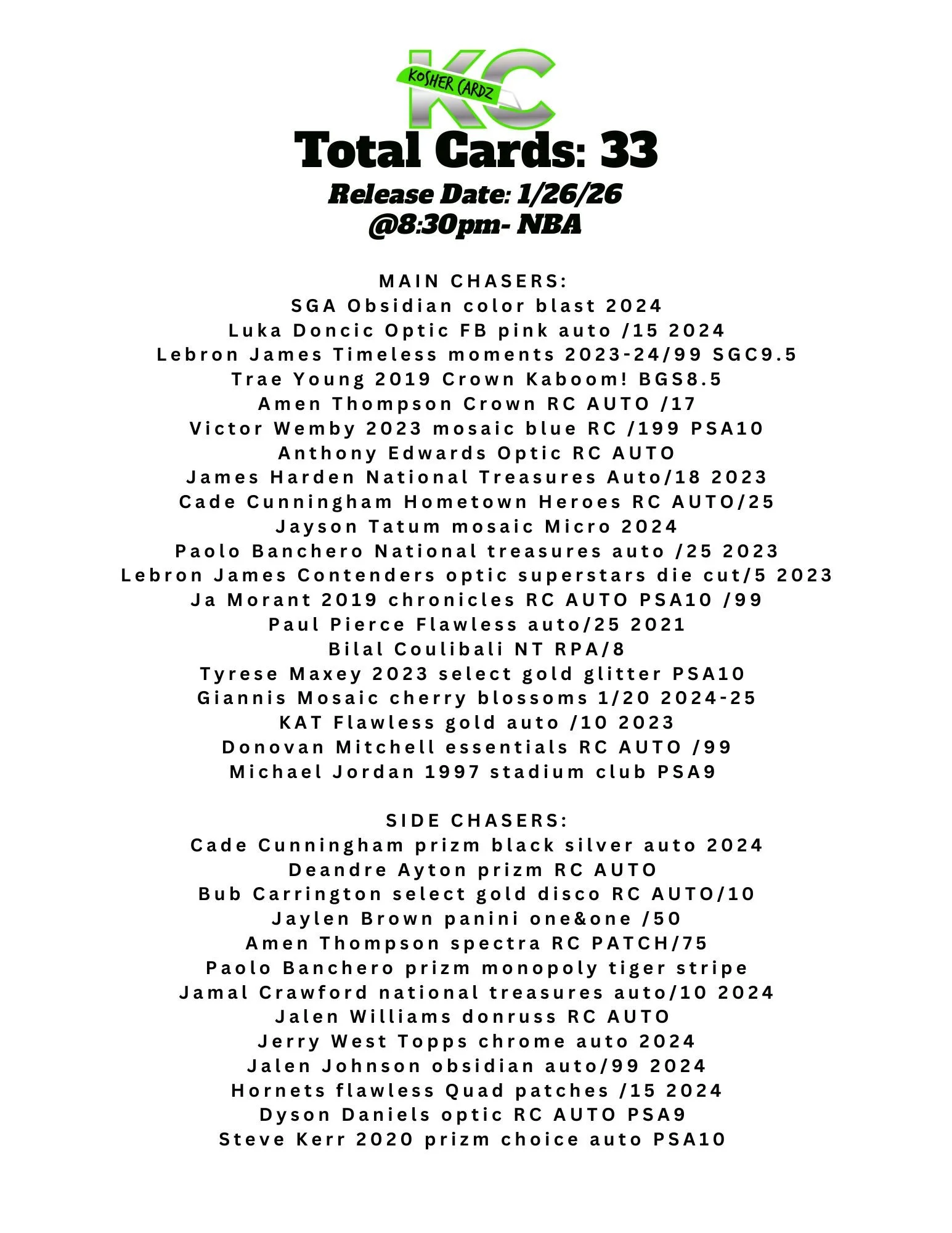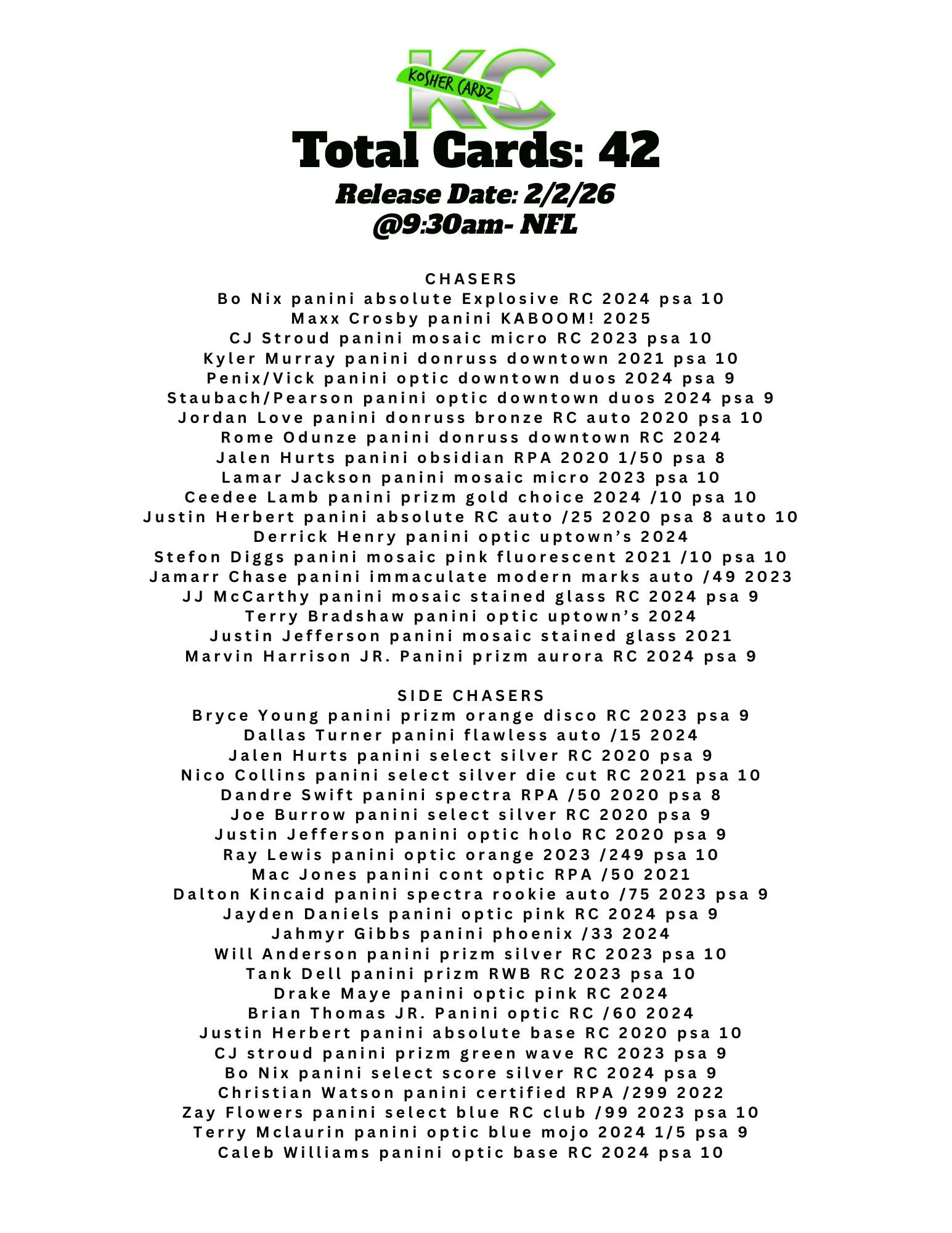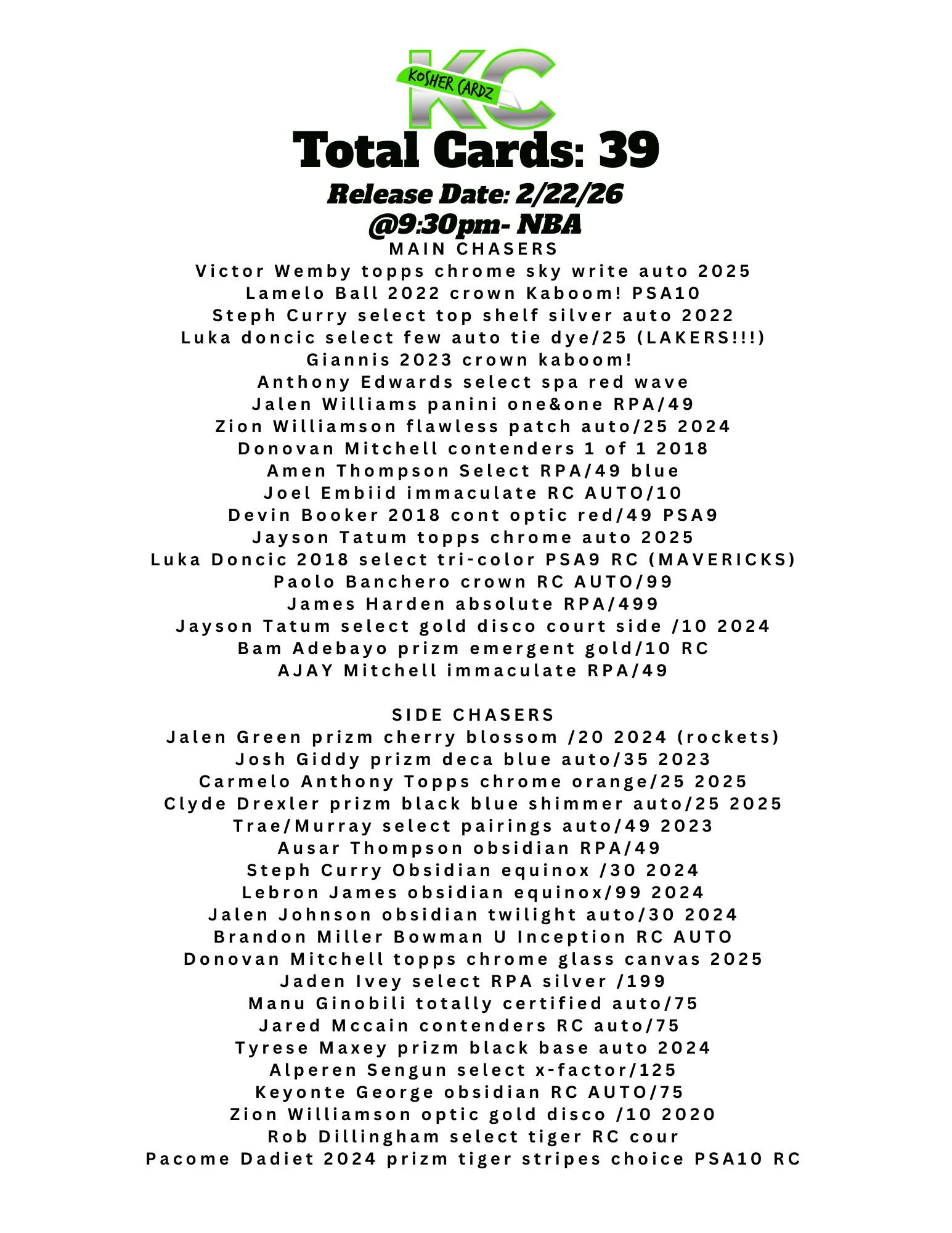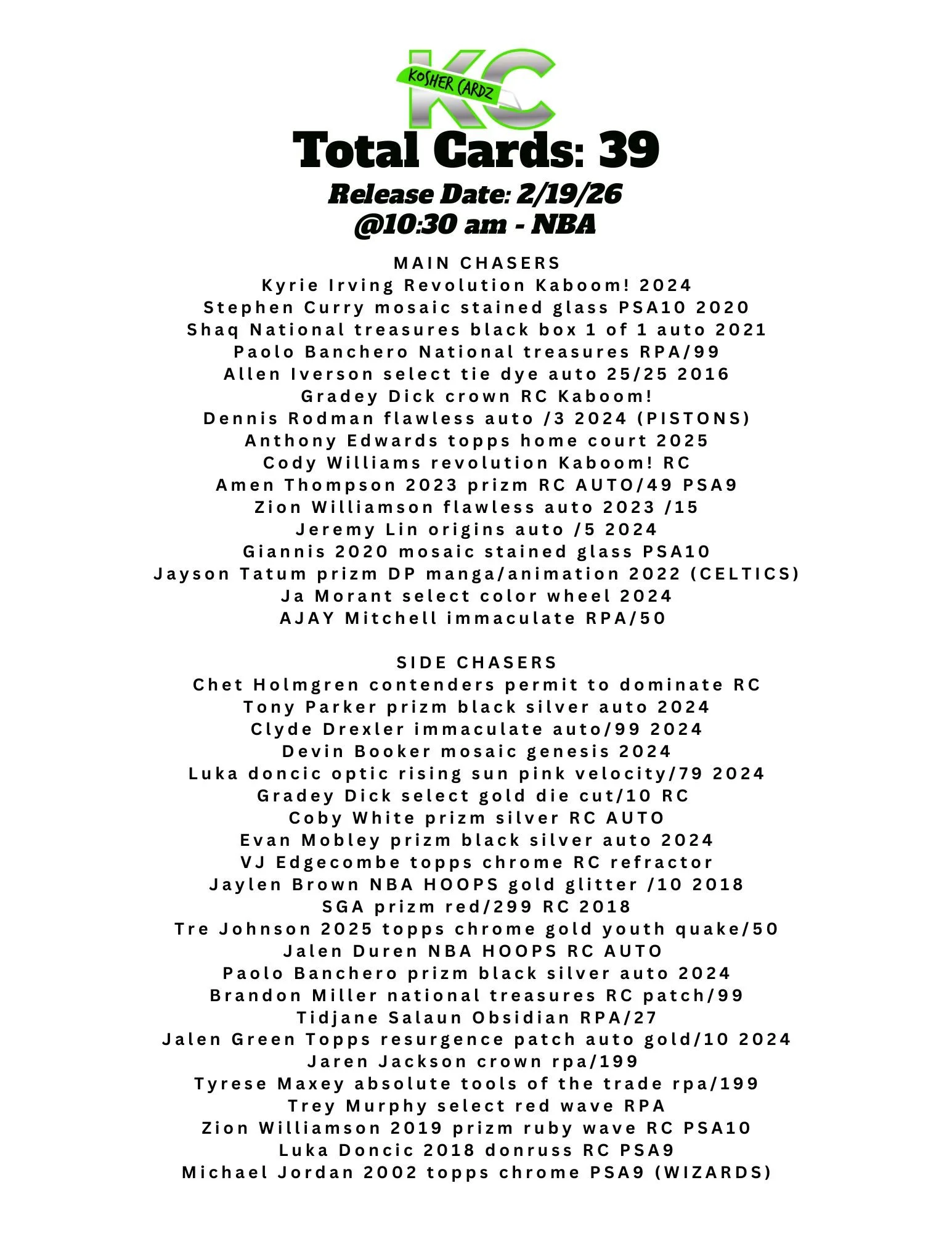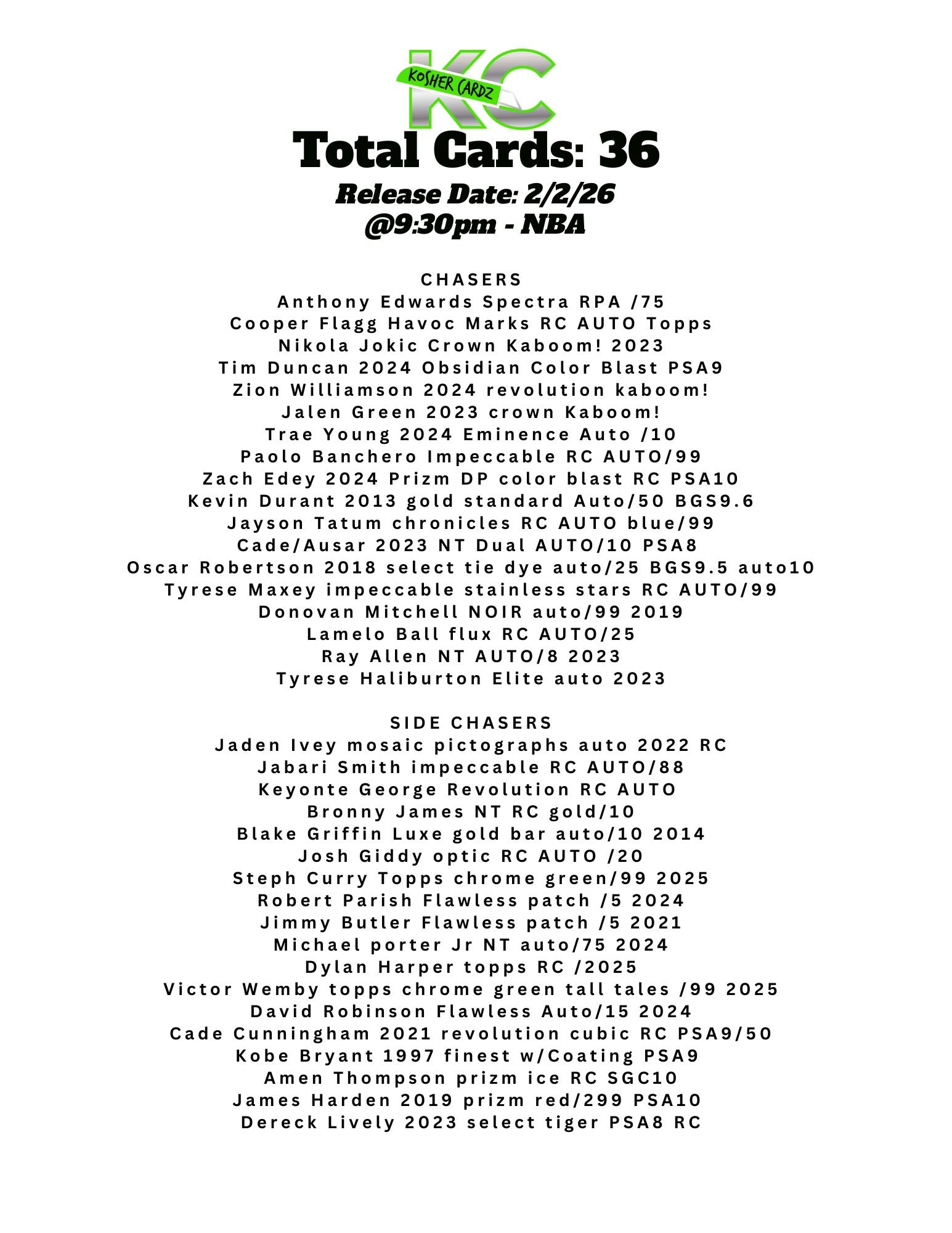 Each checklist represents one complete series that runs entirely within a single livestream and never extends beyond it. As the series progresses, every card pulled is tracked live and visually crossed off the checklist, ensuring complete clarity for all participants.