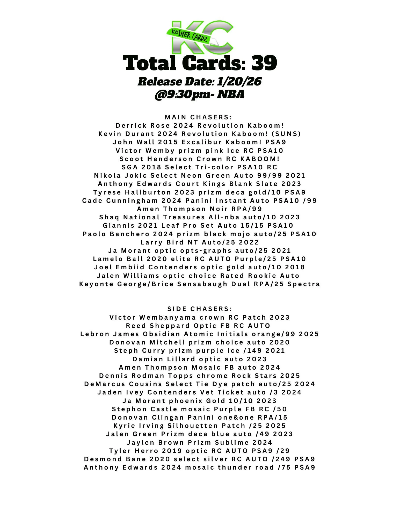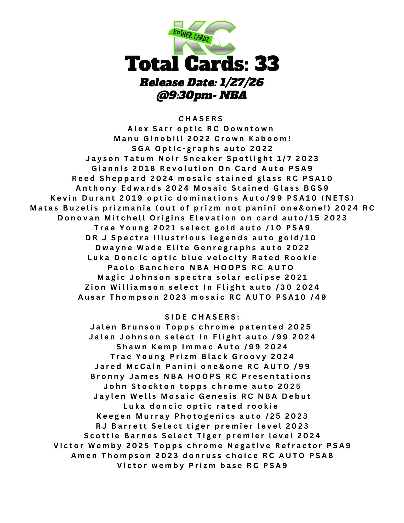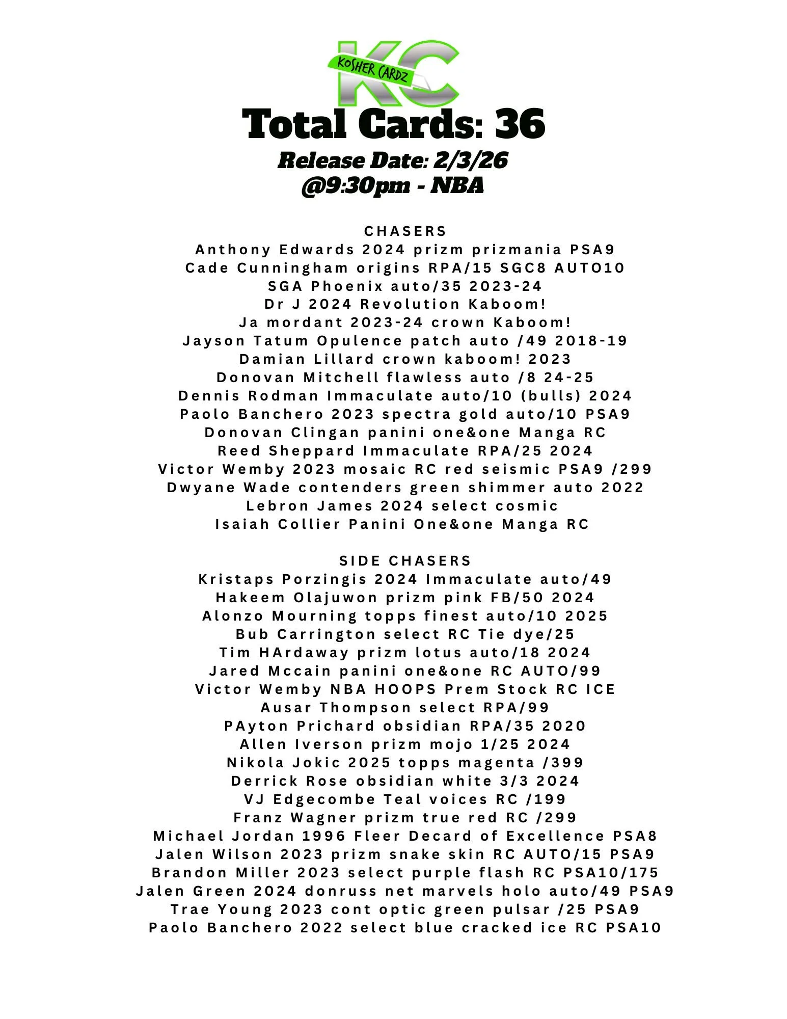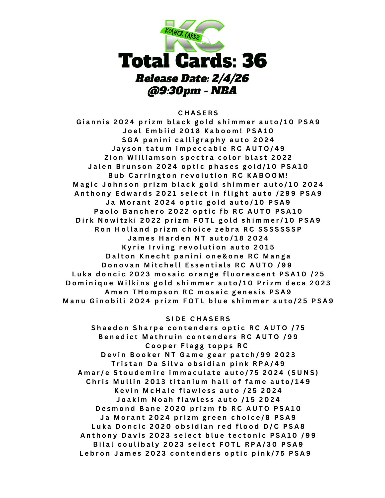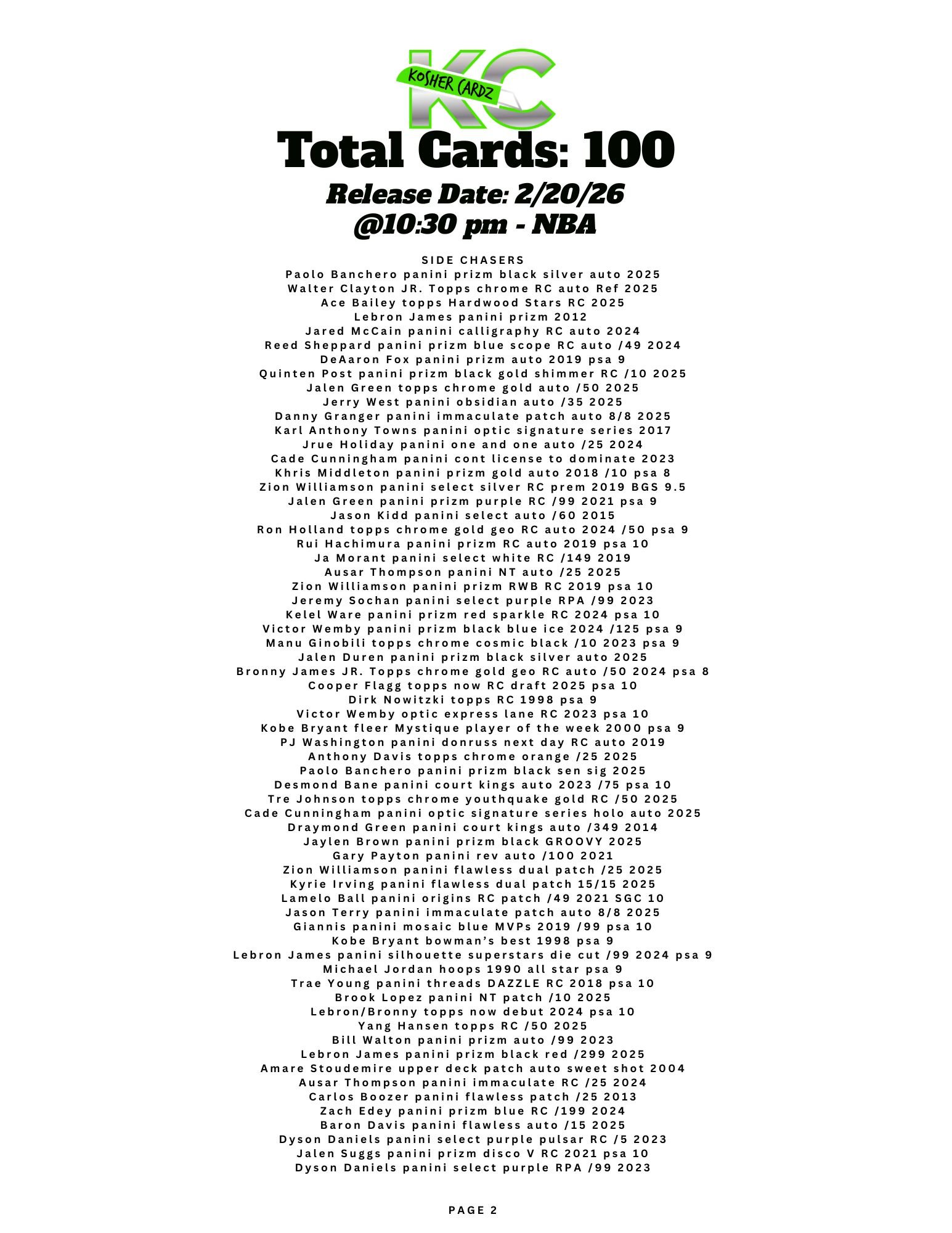 Each checklist represents one complete series that runs entirely within a single livestream and never extends beyond it. As the series progresses, every card pulled is tracked live and visually crossed off the checklist, ensuring complete clarity for all participants.